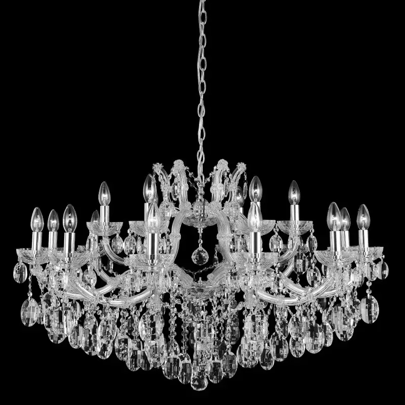 Люстра подвесная двухъярусная с 18-ю лампочками и прозрачными хрустальными подвесками на хромированном основании Crystal lamps