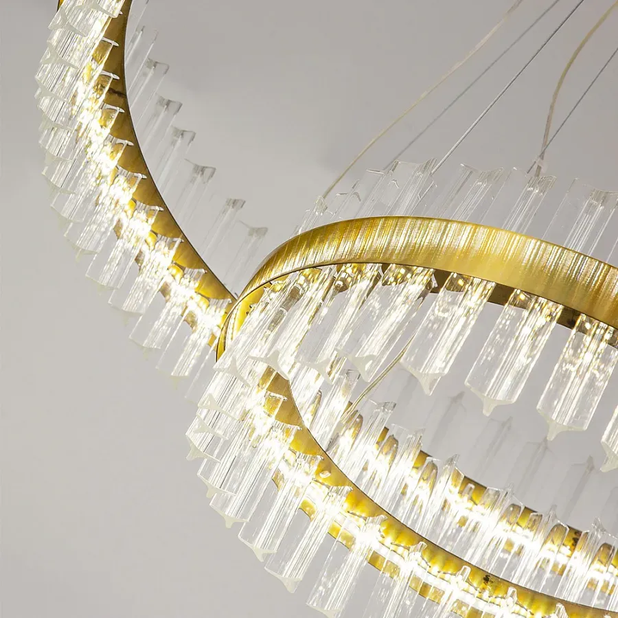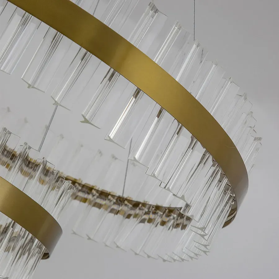 Люстра подвесная двухъярусная с золотистымыми кольцами и прозрачными стеклянными элементами Ring Horizontal