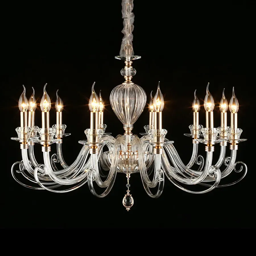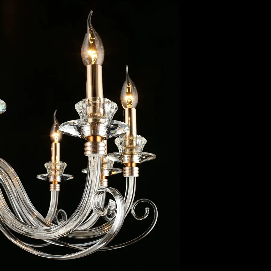 Люстра с 18-ю лампочками и изогнутыми прозрачными элементами из стекла Twisted Glass Candles Chandelier