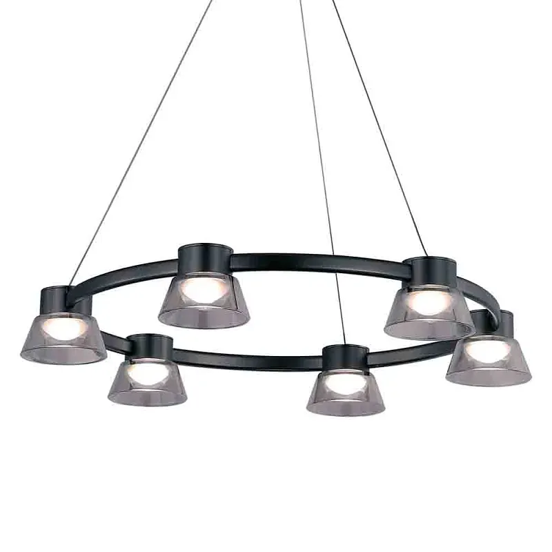 Люстра подвесная кольцевая с дымчатыми плафонами из стекла на черном основании Nebula
