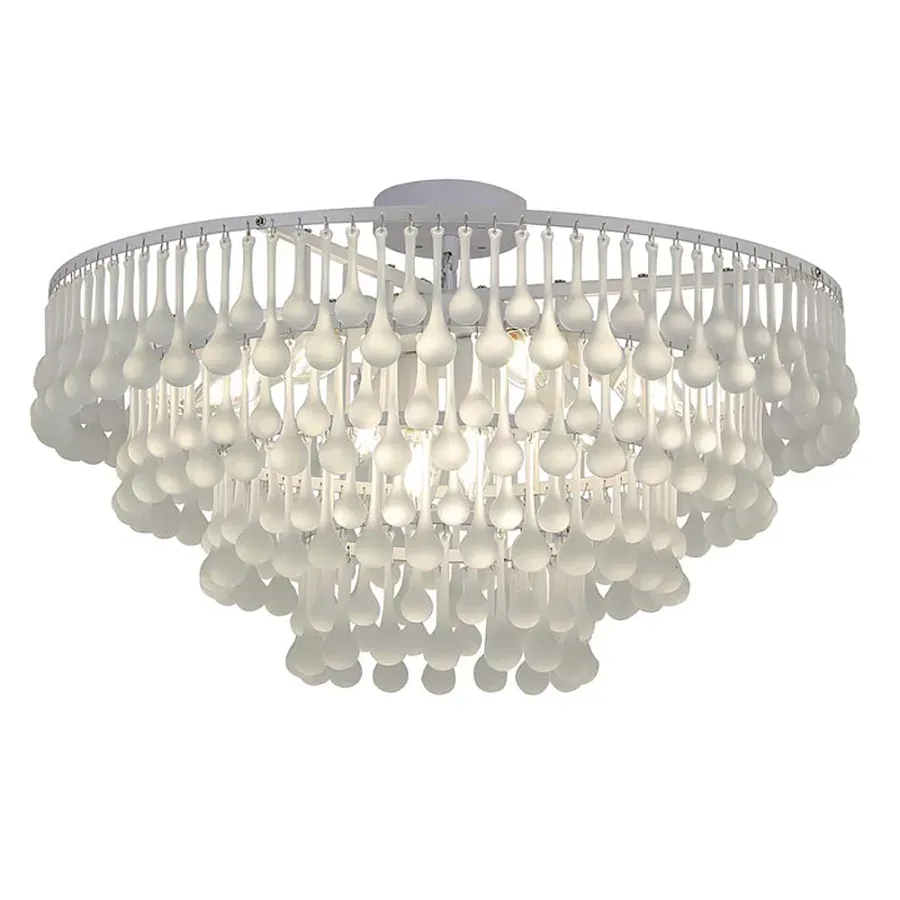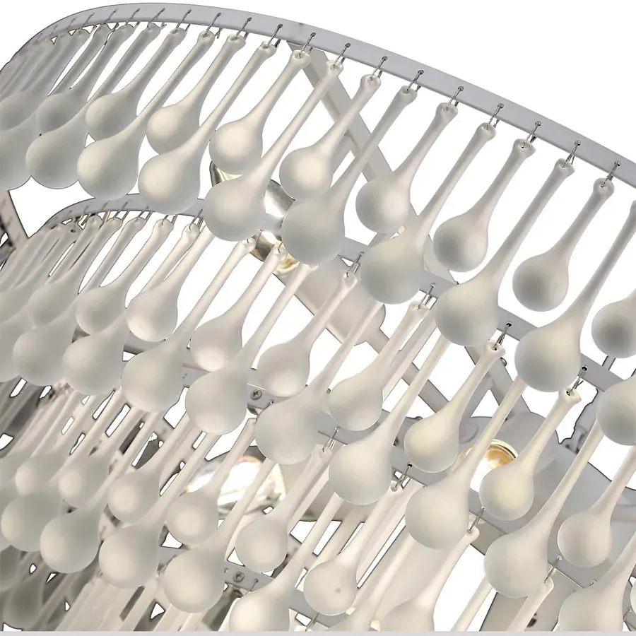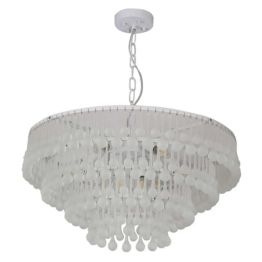 Люстра подвесная круглая с молочными стеклянными подвесками в форме капель Droplet Chandelier