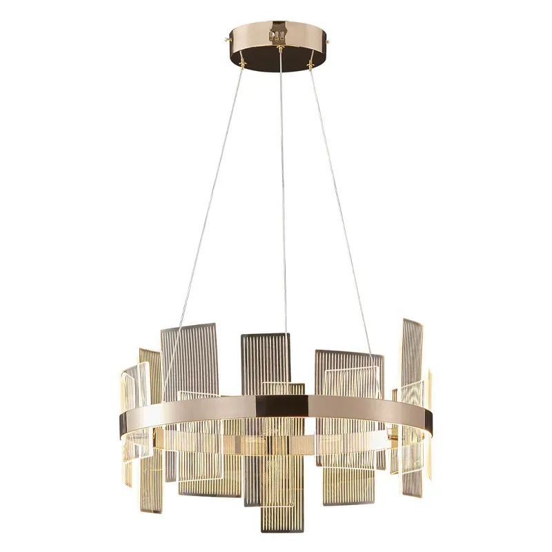 Люстра подвесная круглая с рифлёными прозрачными элементами и золотым основанием Aurea Vista