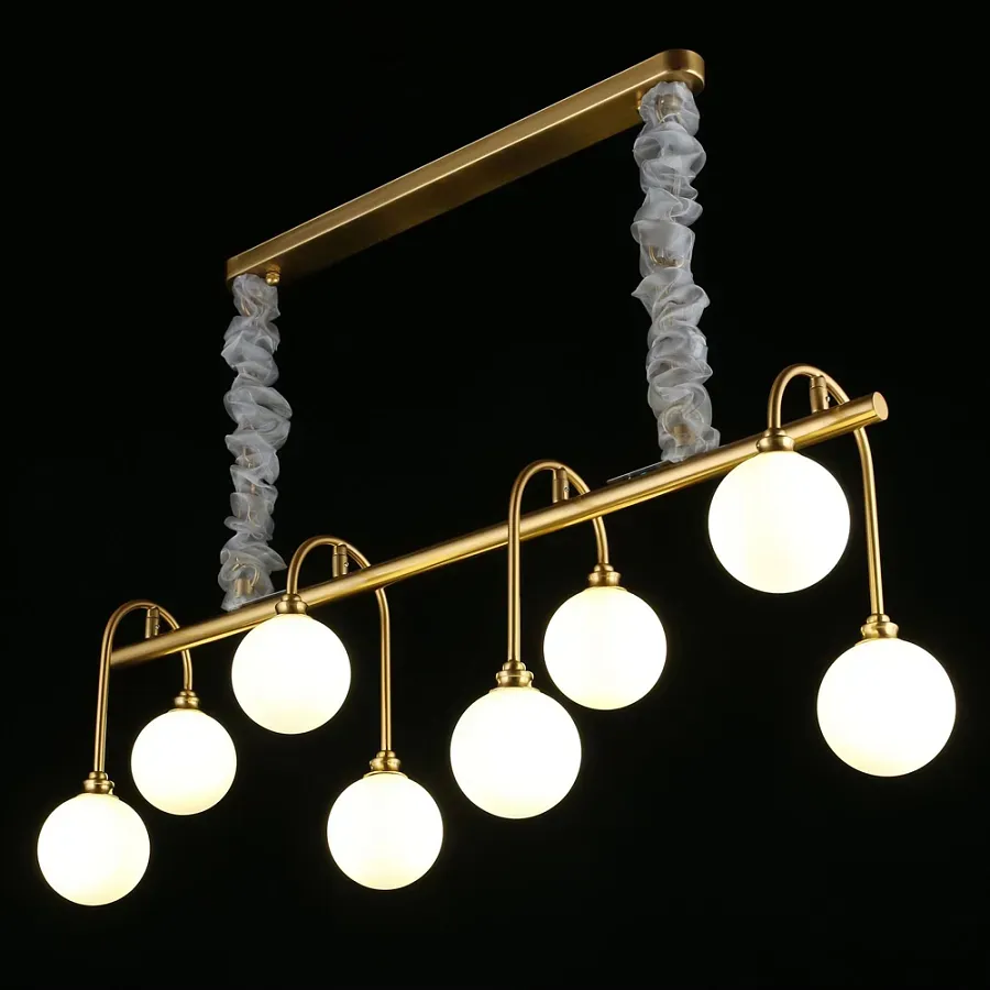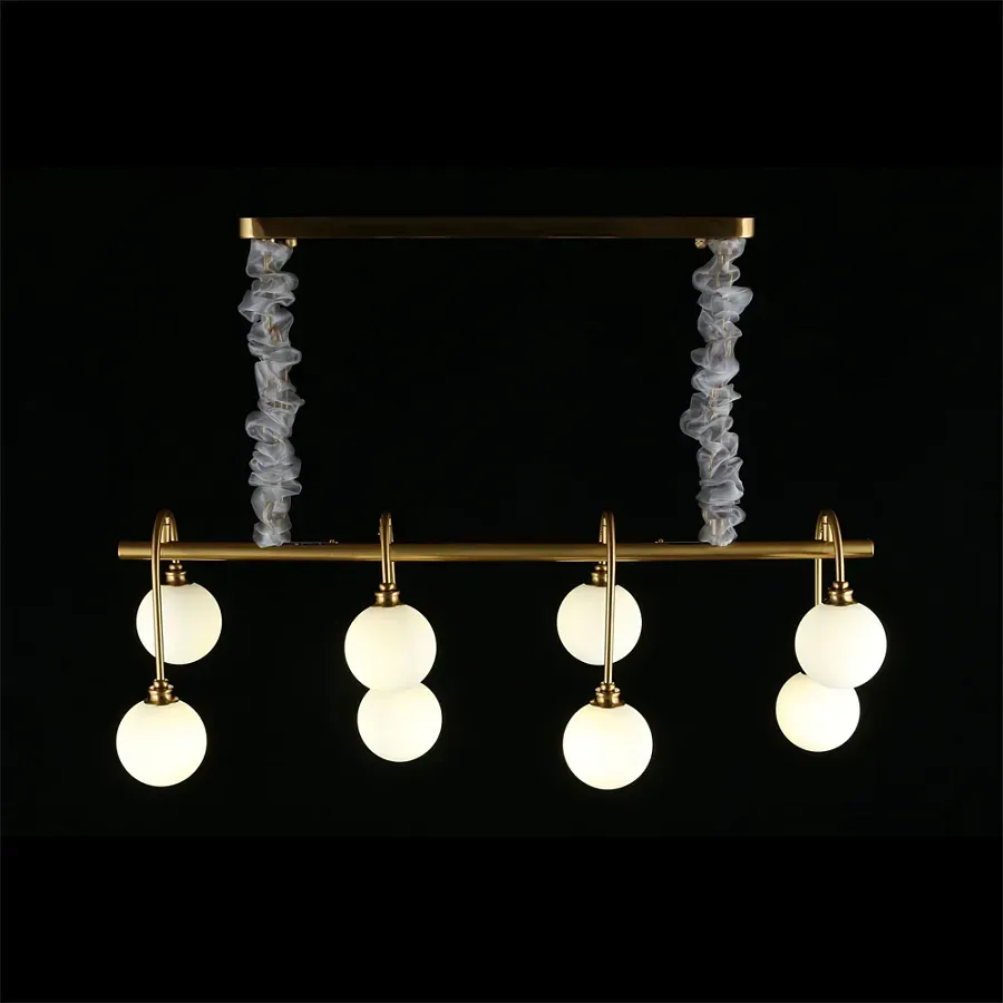 Люстра на штанге с 8-ю белыми шарообразными плафонами Bubble Chandelier