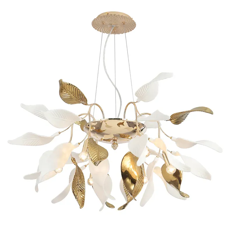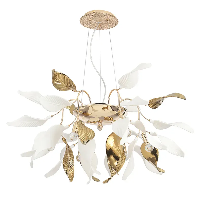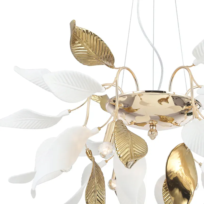 Люстра потолочная с белыми матовыми и золотыми глянцевыми листьями Wintery flovers