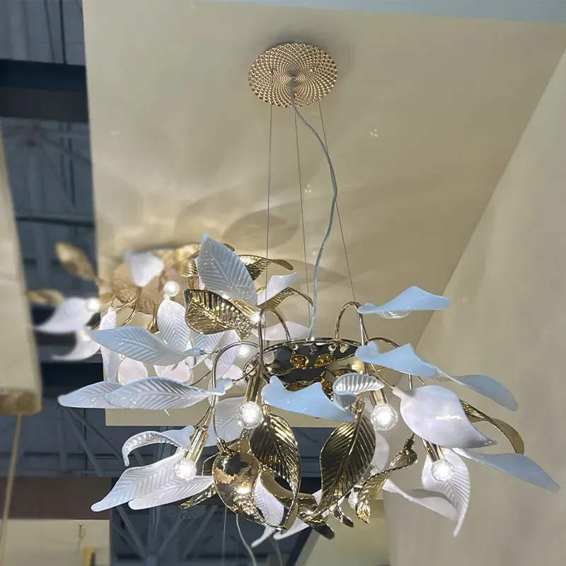 Люстра подвесная с белыми матовыми и золотыми глянцевыми листьями Wintery flovers