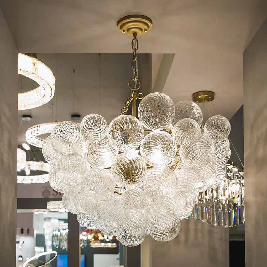 Люстра подвесная с рифлёными стеклянными шарами в форме воздушного облака Berries Chandelier