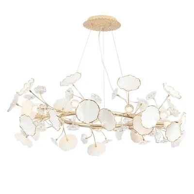 Люстра подвесная круглая с декором в виде листьев белого и латунного цвета Wintery flovers