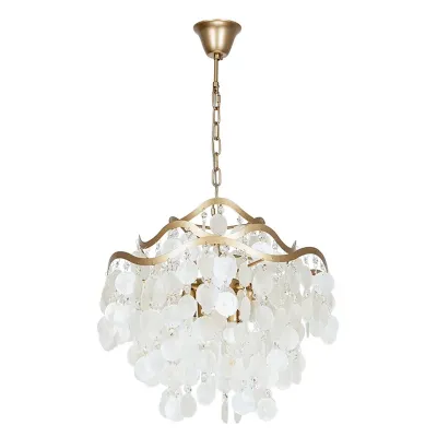 Люстра подвесная с белыми перламутровыми подвесками и изогнутыми золотистыми элементами Диаметр 50 см SHELL Chandelier