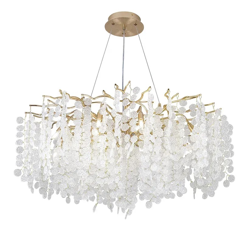 Люстра с хрустальными подвесками и металлическими в виде листьев Fairytree Light Chandelier 9