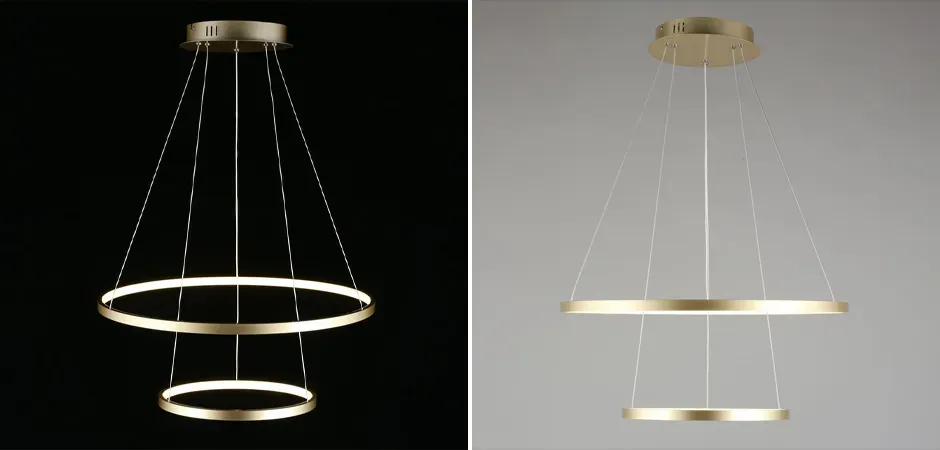 Кольцевая люстра золотого цвета из двух колец
