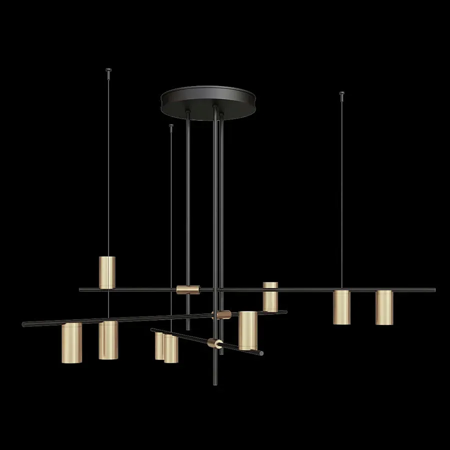 Люстра с 9-ю цилиндрическими плафонами цвета латунь TRIBES CHANDELIER