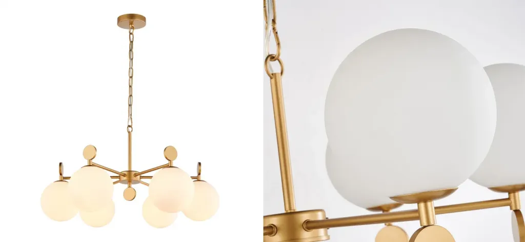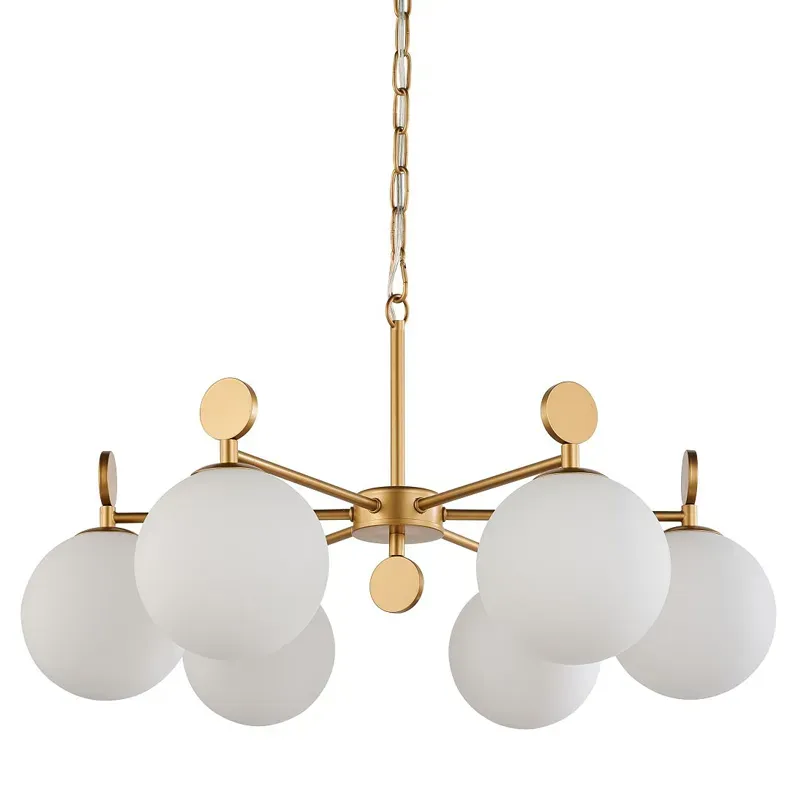 Люстра с золотым каркасом и белыми плафонами Amuse 6 ламп