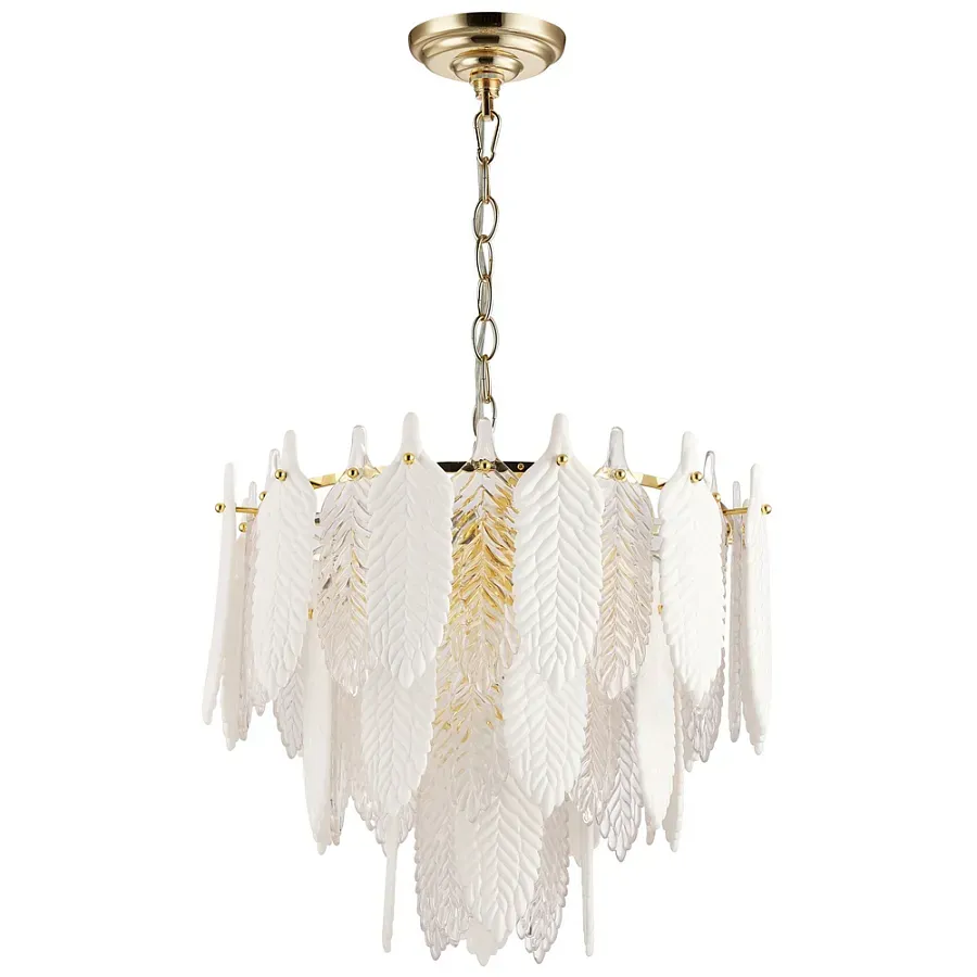 Люстра с декором из рельефного стекла в виде перьев Abelia Feather Chandelier 12