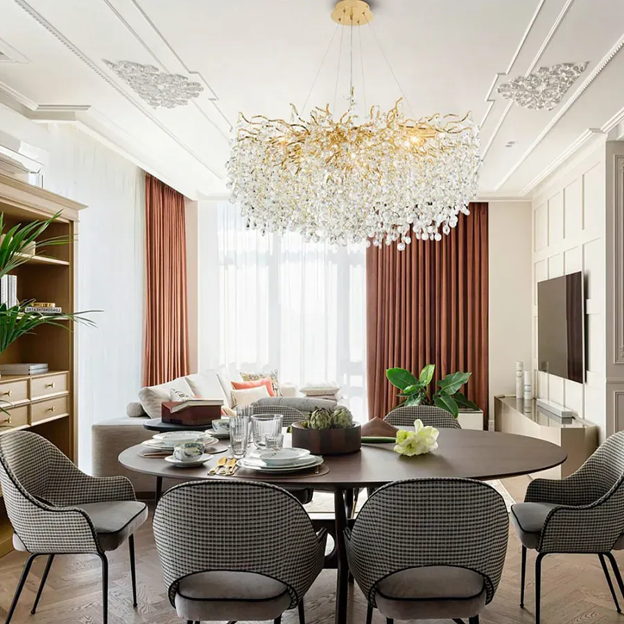 Люстра с хрустальными подвесками в виде капель Droplet Crystal Gold Chandelier 8