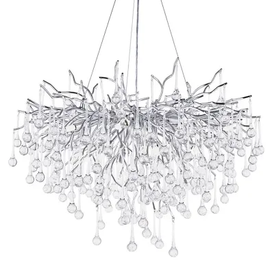 Люстра с хрустальными подвесками на металлических ветках Fairytree Light Silver Chandelier 18