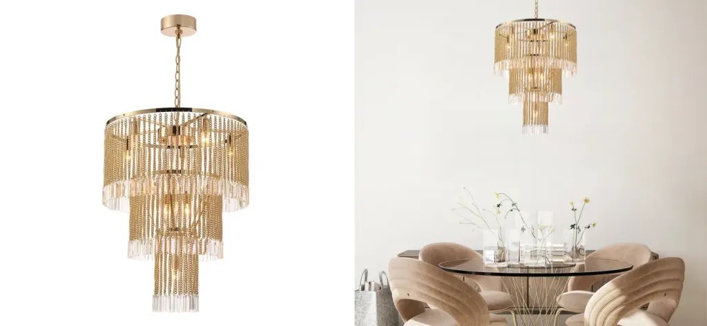 Люстра с подвесками из хрусталя на золотых цепочках Goldy