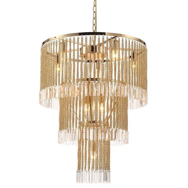 Многоярусная люстра с подвесками из хрусталя на золотых цепочках Goldy