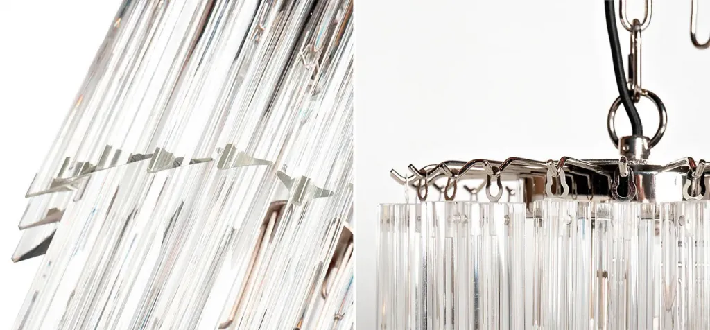 Люстра круглая многоярусная с прозрачными подвесками из стекла Hexagon Tube Light