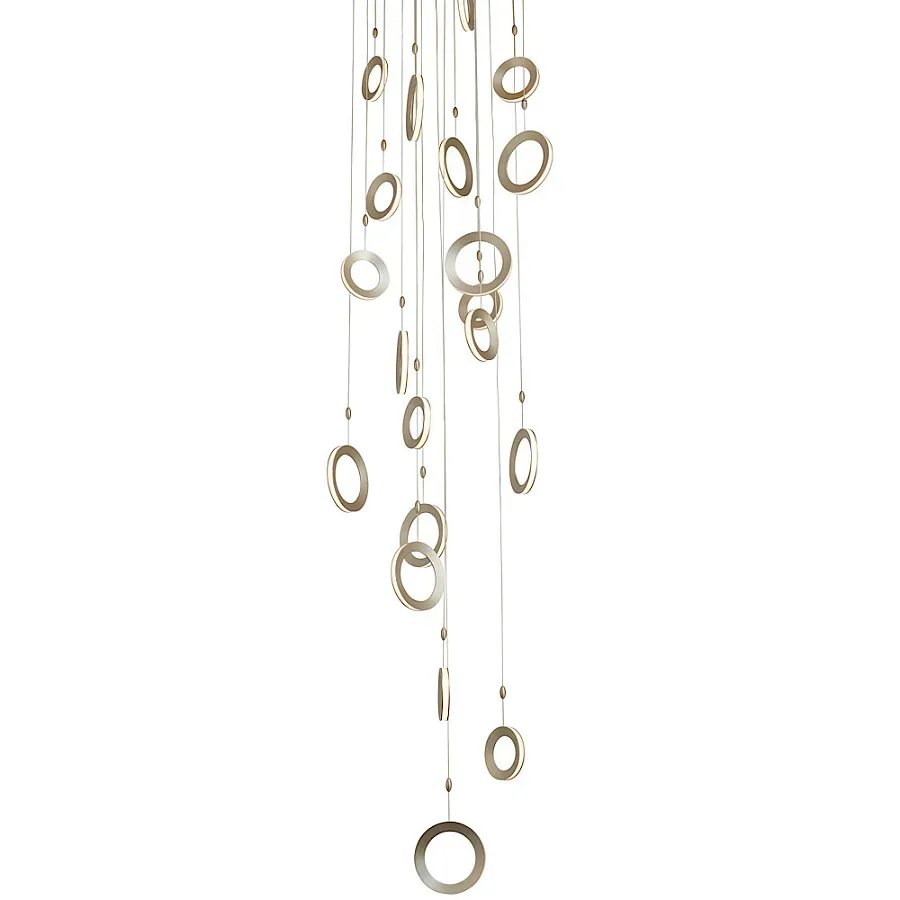 Потолочная люстра каскадная светодиодная с золотистым каркасом Ring of Fire