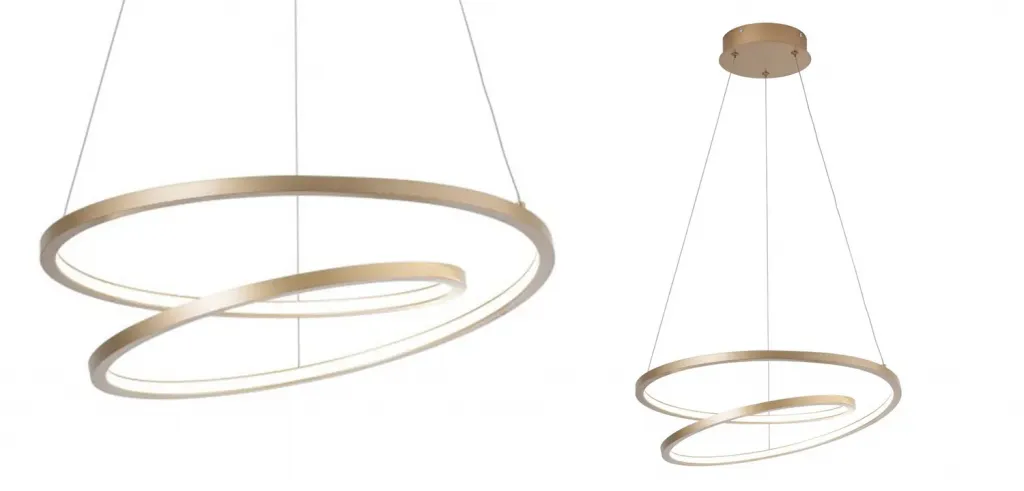 Кольцевая люстра золотого цвета из двух колец