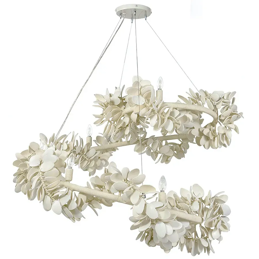Двухъярусная круглая люстра волнистой формы украшенная белыми бусами Azure Beads Chandelier