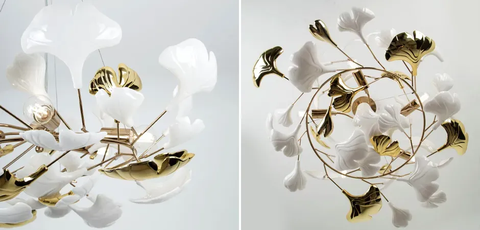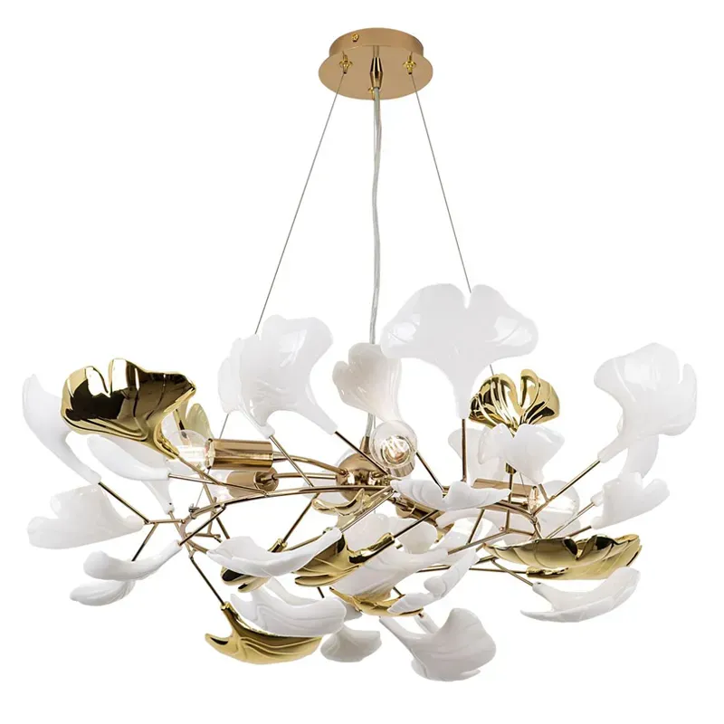 Люстра подвесная с белыми матовыми и золотыми глянцевыми листьями Wintery flovers