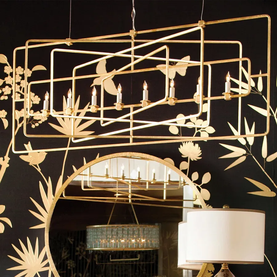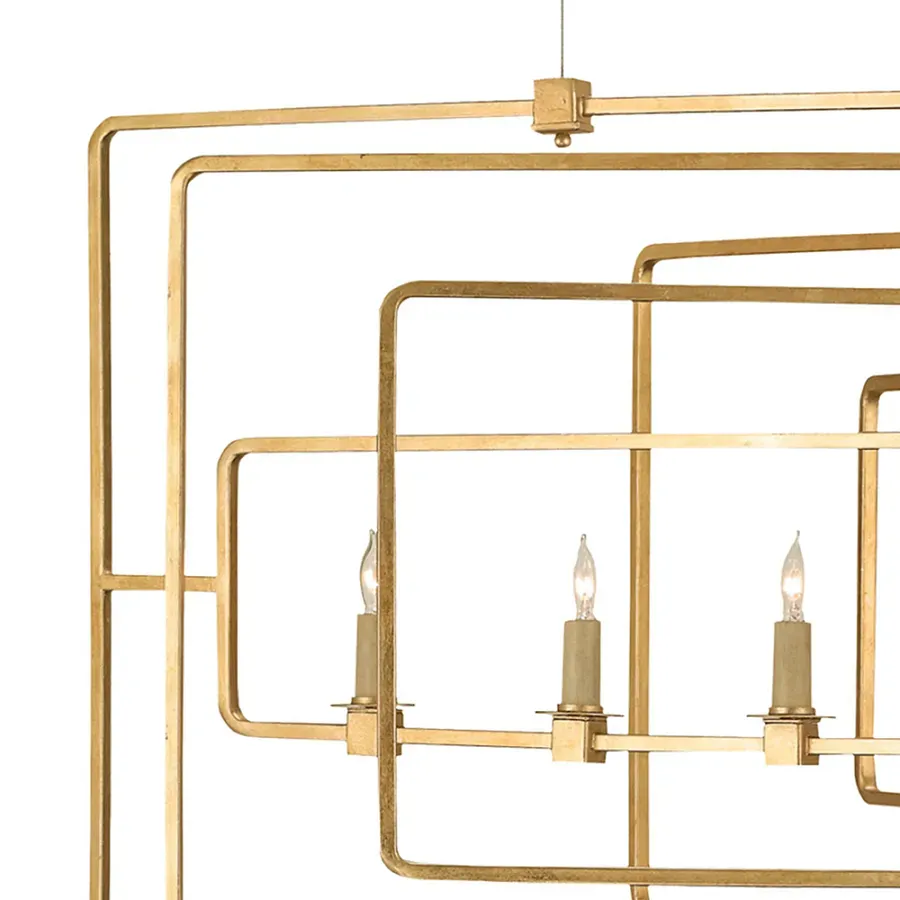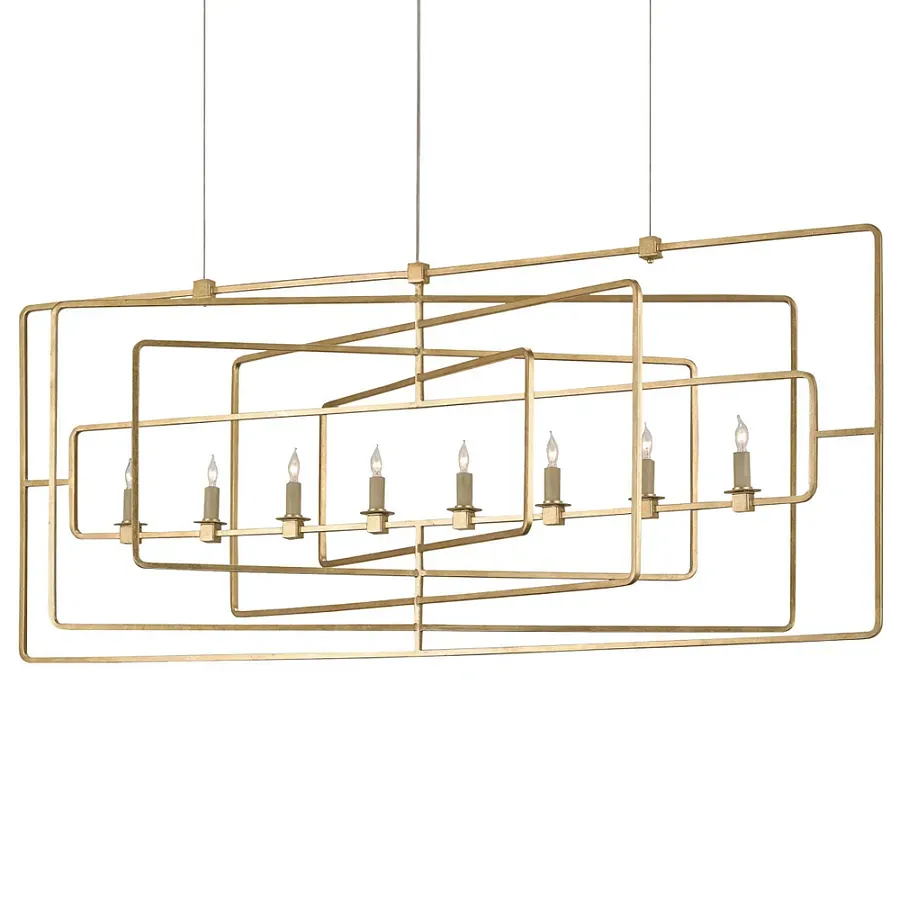 Люстра золотая из пересекающихся прямоугольных элементов Thin Intersecting Rectangles