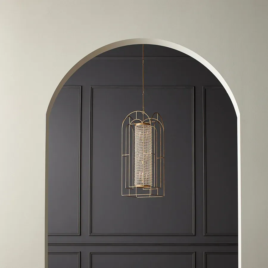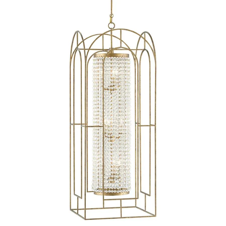 Люстра золотая с внутренним цилиндром из хрустальных бусин Romantic Lantern