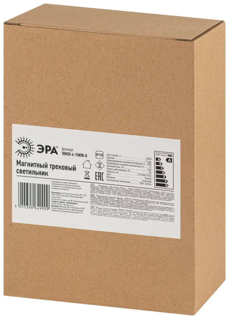 Трековый магнитный светильник Эра TRM20-6-15W3K-B Б0054822