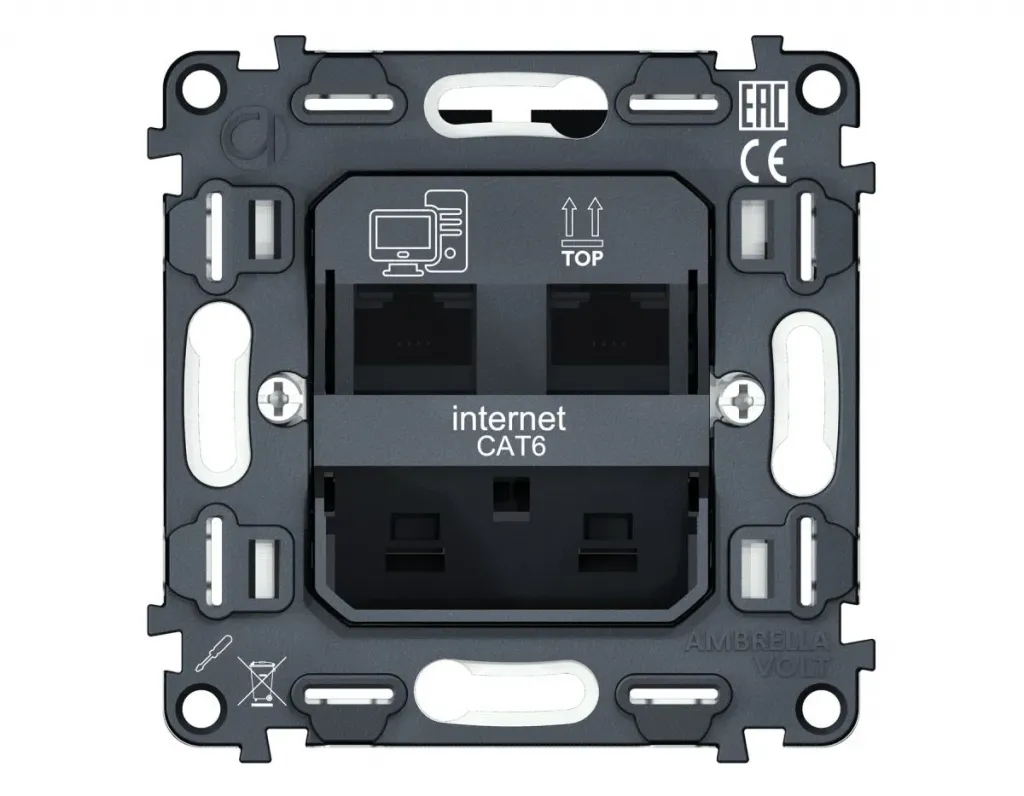 Механизм компьютерной двойной розетки RJ-45 (8P8C) CAT6 с автоматической защитной шторкой QUANT Ambrella Volt VM189
