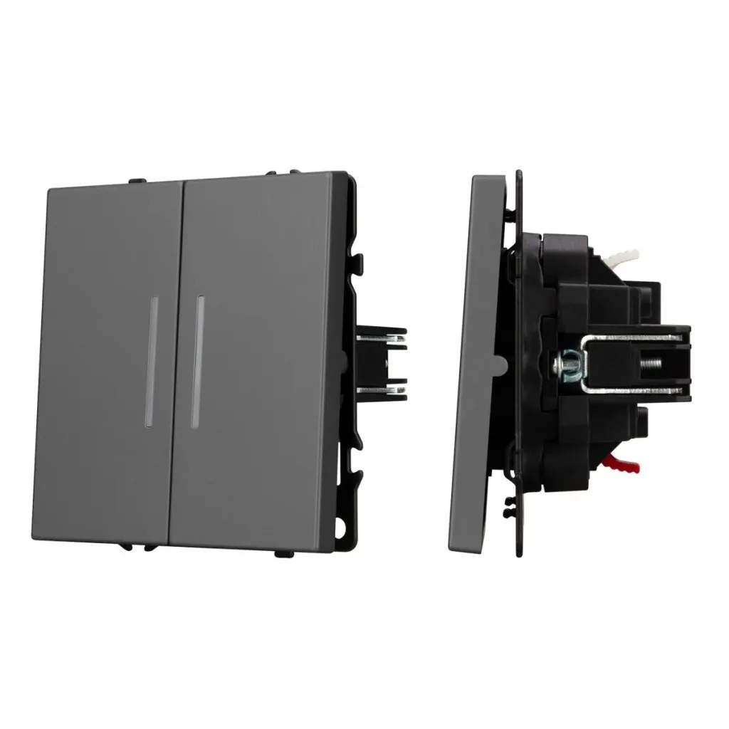 Механизм выключателя двухклавишный непроходной Arlight LED SWT-NOBE-MK02-SFPL-L-GR (230V, 10A) 054266