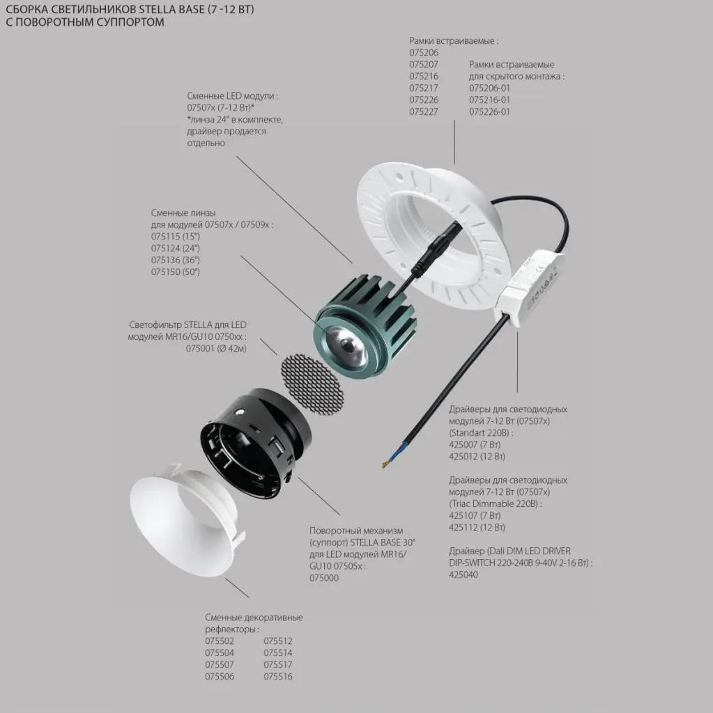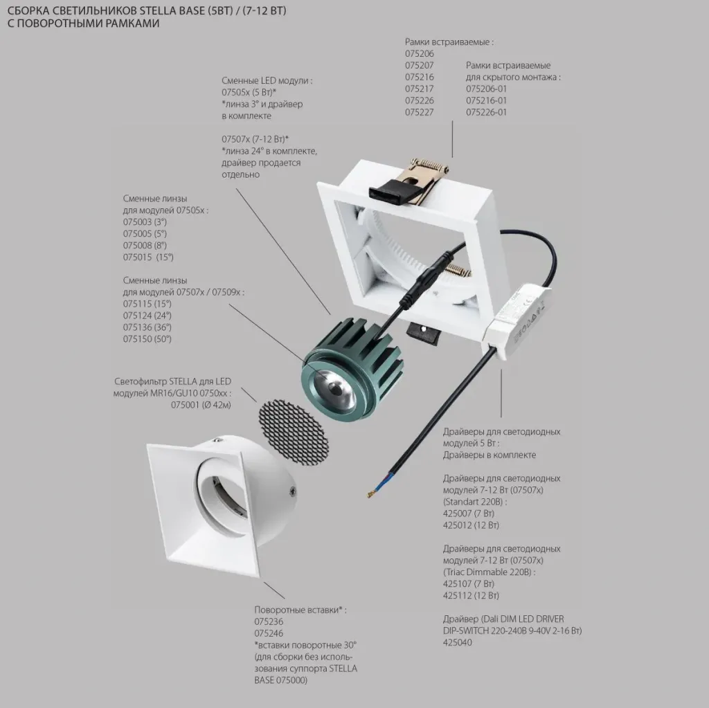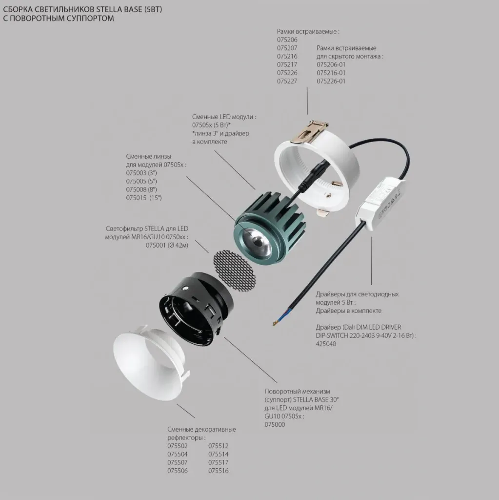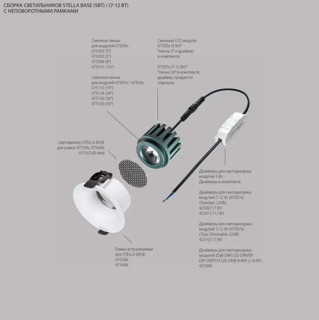 Модуль светодиодный 5W 2700K СУПЕРУЗКИЙ 3° Lightstar Stella Base 075052