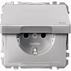 MTN2314-4060 Механизм розетки с заземлением с крышкой IP 44,алюминий Merten