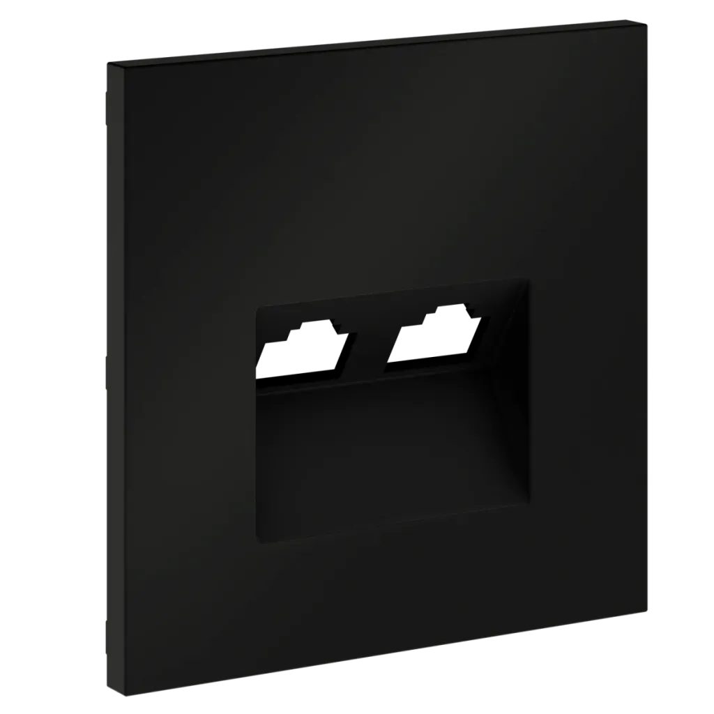 Накладка для розетки компьютерной двойной RJ45+RJ45 кат.6 Voltum S70 (черный матовый) VLS001408