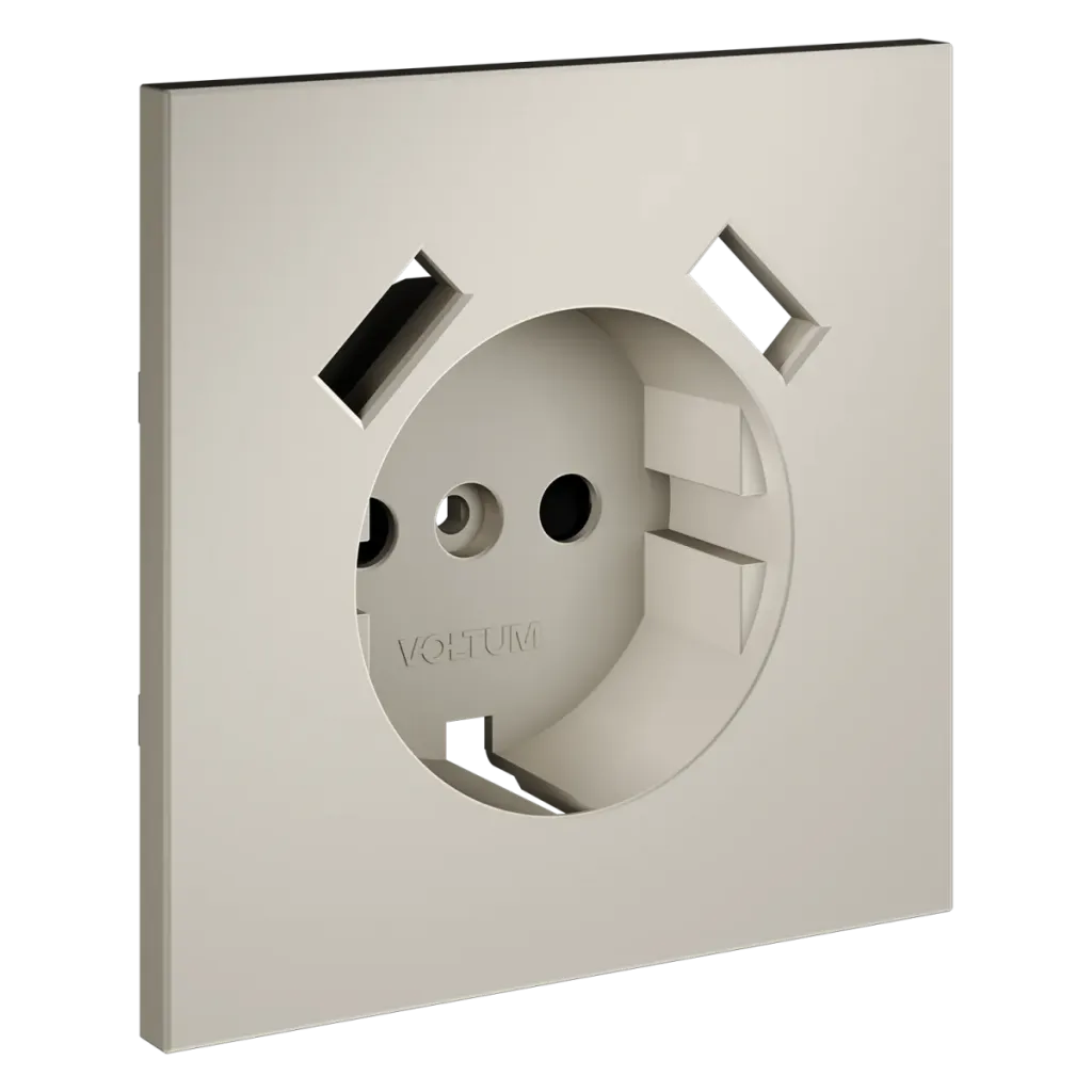 Накладка для розетки с заземлением и защитными шторками, с USB A+A Voltum S70 (кашемир) VLS000903