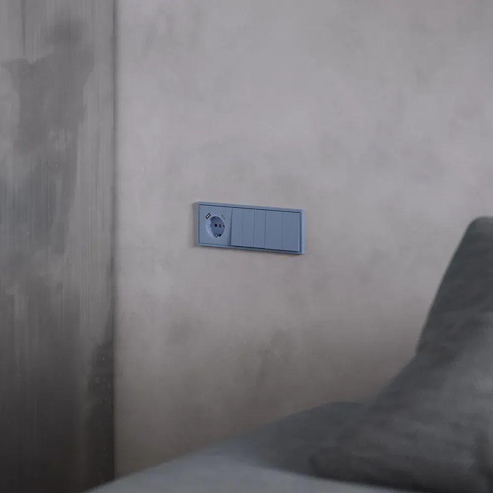 Накладка для розетки с заземлением и защитными шторками, с USB A+C Voltum S70 (деним) VLS001015