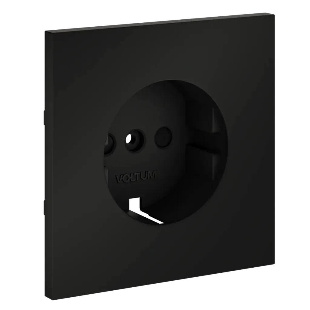 Накладка для розетки с заземлением и защитными шторками Voltum S70 (черный матовый) VLS000708