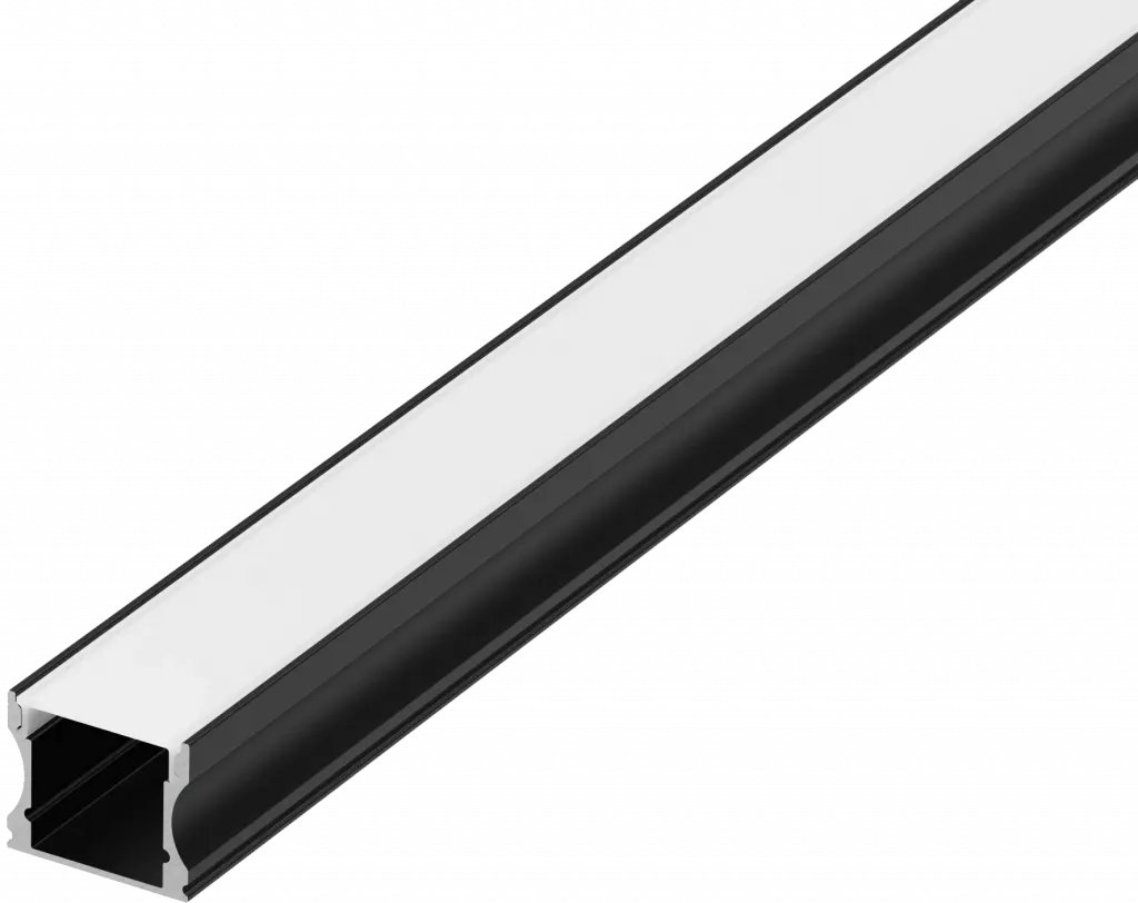 Накладной алюминиевый профиль, 17,2х14,4х2000мм. В комплекте матовый экран, 4 торцевые заглушки, 4 крепежа, черный RAL9005