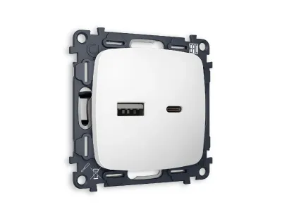 Комплект механизма розетки 2USB A+C 20W (быстрая зарядка) Ambrella Volt Omega MO131010