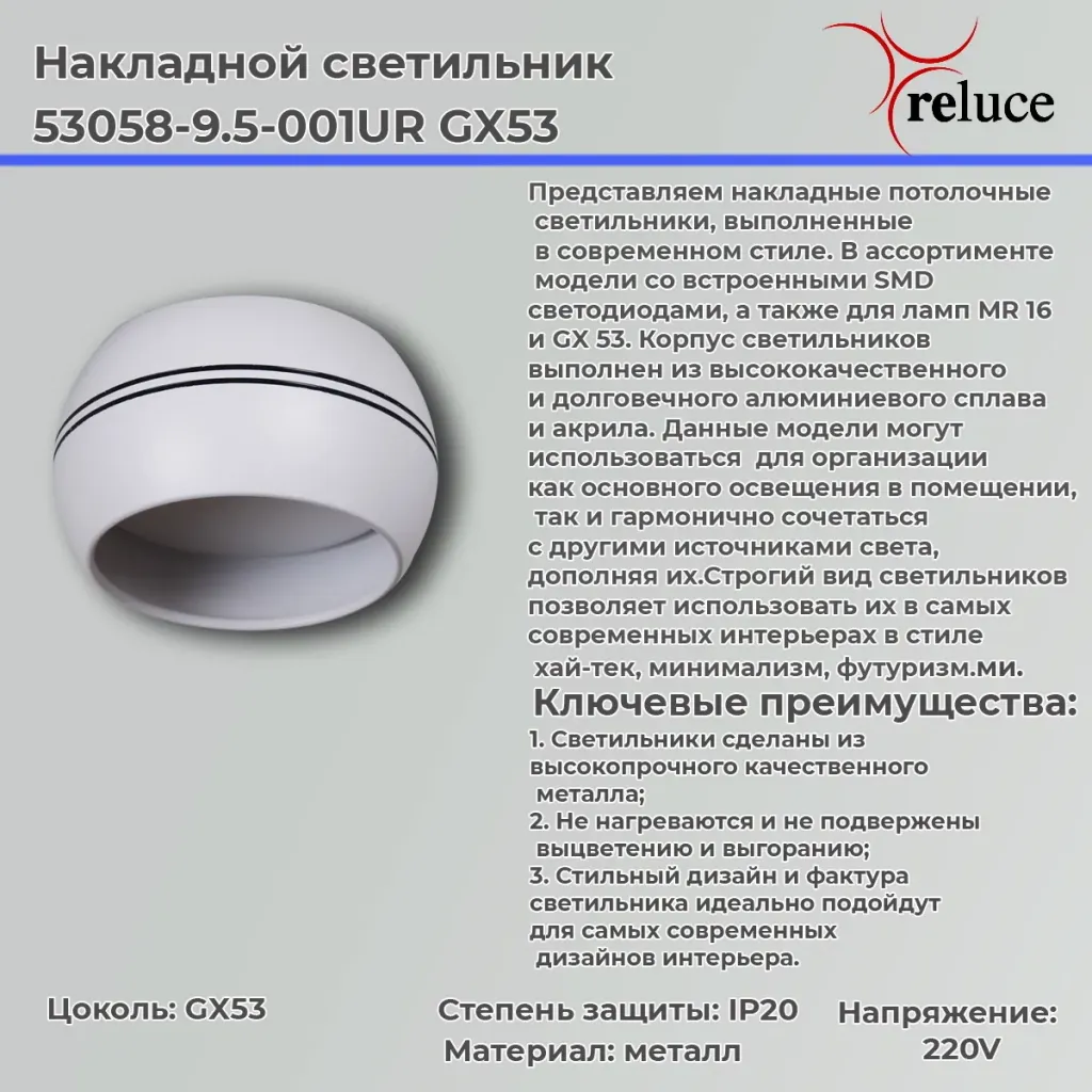 Накладной светильник Reluce 53058-9.5-001UR GX53 WT+BK