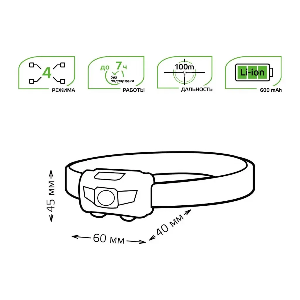 Налобный светодиодный фонарь Gauss аккумуляторный 60х70 100 лм GF401
