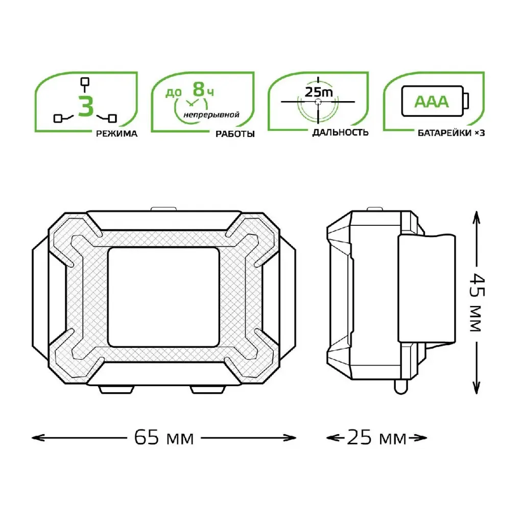 Налобный светодиодный фонарь Gauss от батареек 65х45 150 лм GF305