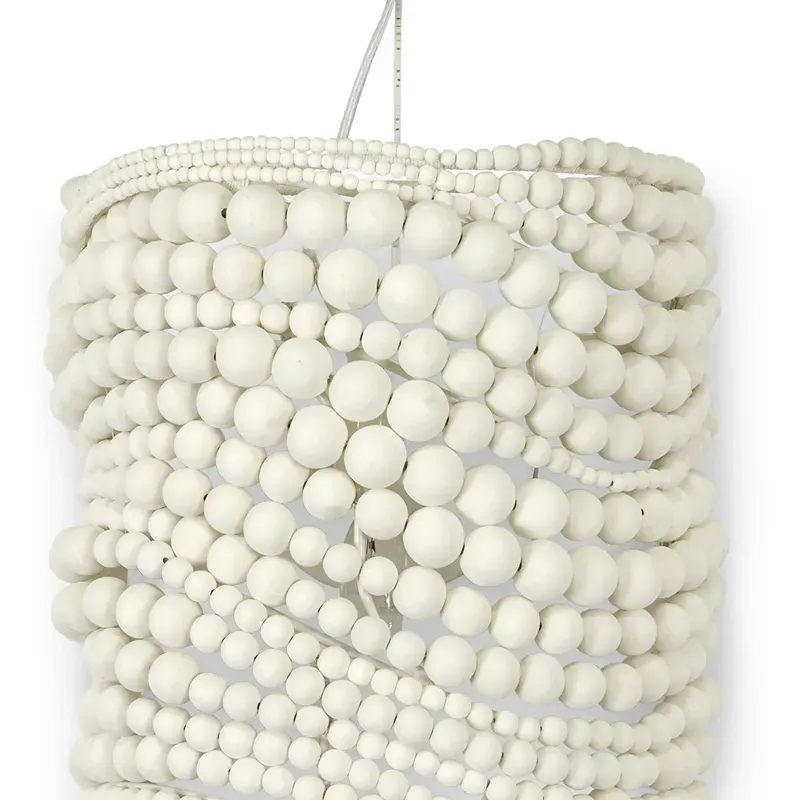 Люстра белая в форме спирали с декором из круглых деревянных бусин White Wooden Beads