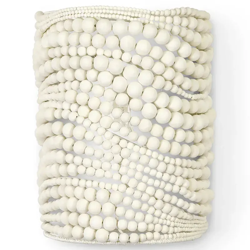 Настенный бра декорированный деревянными белыми круглыми бусинами White Wooden Beads Wall Lamp