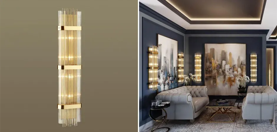 Бра с декором в виде хрустальных трубочек Nembus Brass Glass Wall Lamp