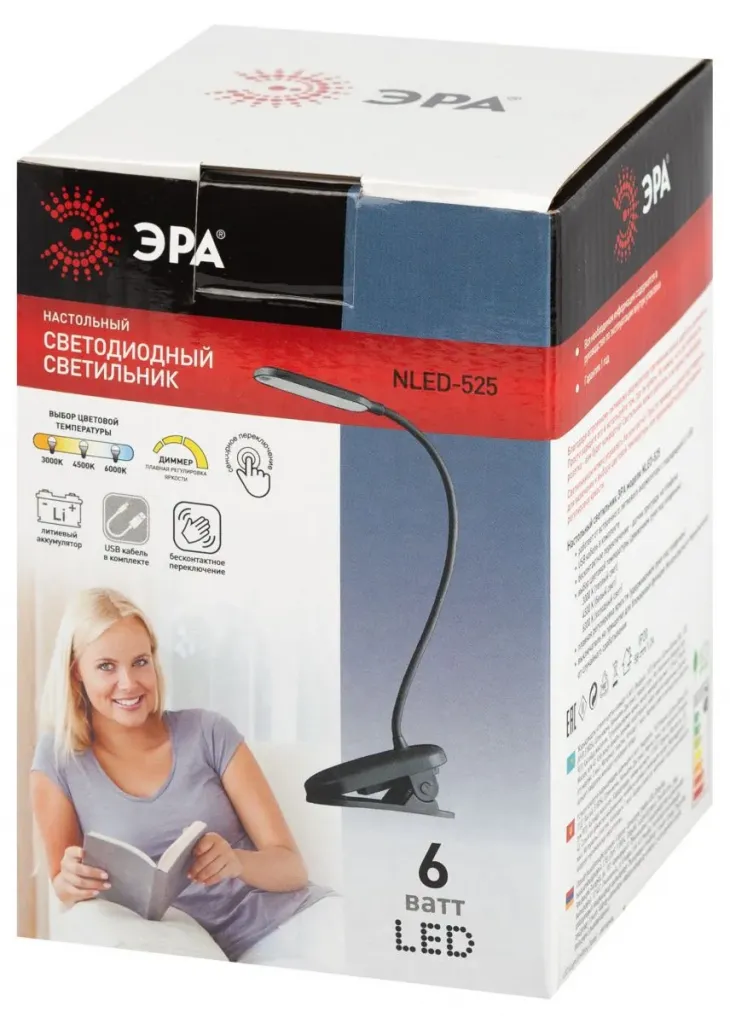 Настольная аккумуляторная лампа Эра NLED-525-6W-BK Б0068549