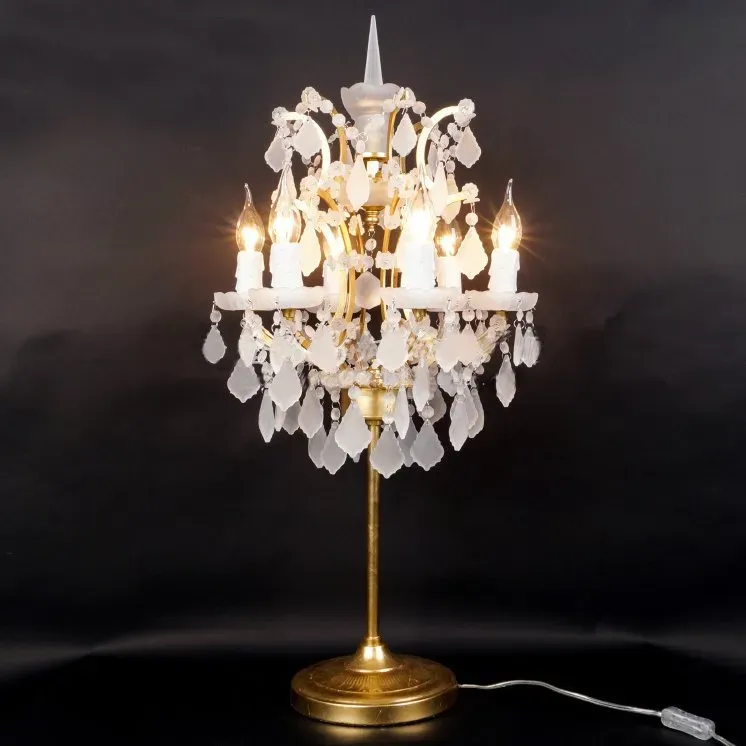 Настольная лампа 19TH C. ROCOCO IRON & White Matt CRYSTAL Table Lamp