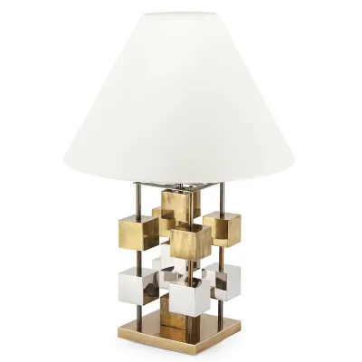 Настольная лампа с абажуром и основанием из хрусталя Neri Crystal Cubes Gold Table Lamp