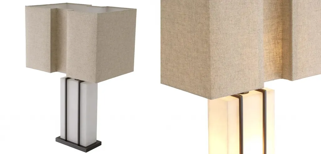 Настольная лампа мраморная с тканевым цилиндрическим абажуром Sharpened