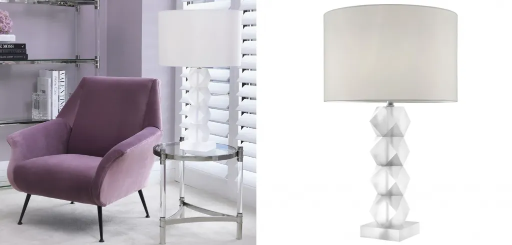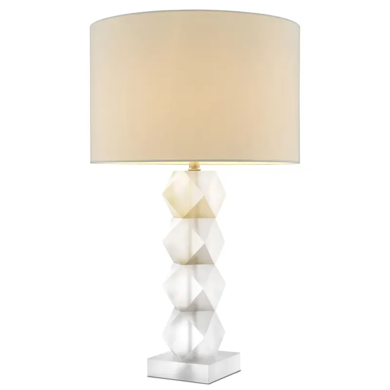 Настольная лампа с абажуром и основанием из хрусталя Neri Crystal Cubes Brass Table Lamp